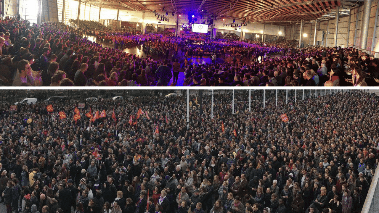 Mercredi 12 avril à 19h30, Jean-Luc Mélenchon était en meeting à Lille où 25 000 personnes étaient rassemblées pour l’Avenir en commun. Jean-Luc Mélenchon a répondu aux nombreuses attaques des médias et adversaires politiques, notamment aux unes des «Echos» et du «Figaro». Il a ensuite détaillé nos propositions pour faire le partage des richesses avec le partage du temps de travail : retour réel aux 35 heures, retraite à 60 ans avec 40 annuités, augmentation des salaires et enfin réforme fiscale, qui permettra à tous ceux qui gagnent moins de 4000 euros par mois de payer moins d’impôt mais qui imposera à 90% ceux qui gagnent plus de 400 000€ par an (soit 0,05% de la population). Jean-Luc Mélenchon est ensuite revenu sur l’importance de l’éducation et du savoir, en affirmant que nous reviendrons sur la réforme du collège afin de rétablir l’égalité entre les élèves. Il a rappelé que nous sortirons des traités européens et des traités de libre-échanges comme le TAFTA et le CETA et que nous ferons la planification écologique avec la sortie du nucléaire, le 100% d’énergies renouvelables à l’horizon 2050 et la transition de notre modèle agricole avec l’interdiction des pesticides qui détruisent les sols, la mer et notre santé. Il a présenté nos mesures pour les PME avec la baisse de l’impôt sur les sociétés, le taux d’escompte à 0% et la fin du RSI en permettant aux entrepreneurs d’intégrer le régime général de la Sécurité Sociale. Enfin, Jean-Luc Mélenchon a conclu en disant que la victoire était à notre portée à condition que tout le monde s’investisse dans les 10 jours restant avant le premier tour.