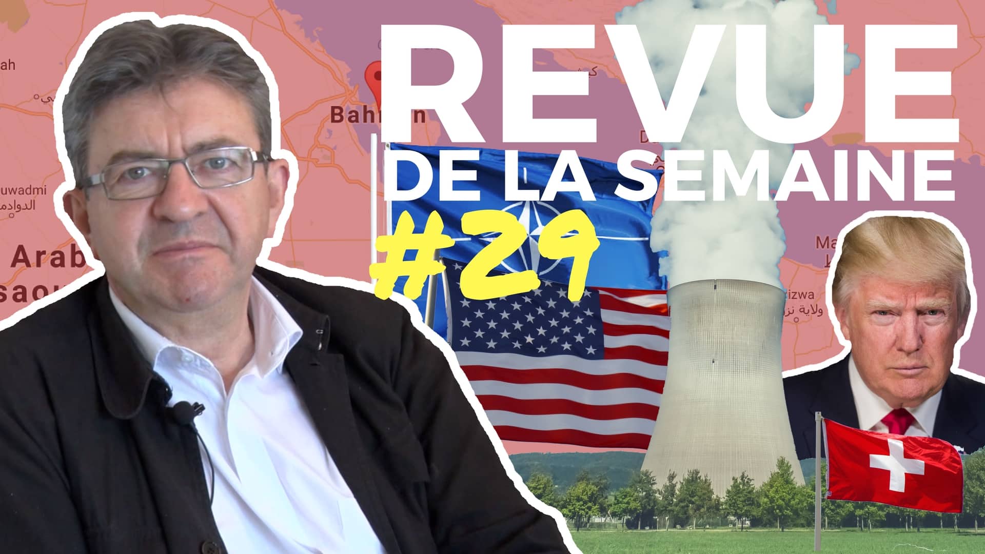 Dans ce 29e numéro de la Revue de la semaine, Jean-Luc Mélenchon se félicite du résultat du référendum sur la sortie du nucléaire en Suisse. Il analyse ensuite le sommet de l’OTAN auquel participait Donald Trump puis parle de la répression d’une manifestation pour plus de démocratie à Bahreïn. Enfin, Jean-Luc Mélenchon revient sur l’attaque contre lui de la Société générale.