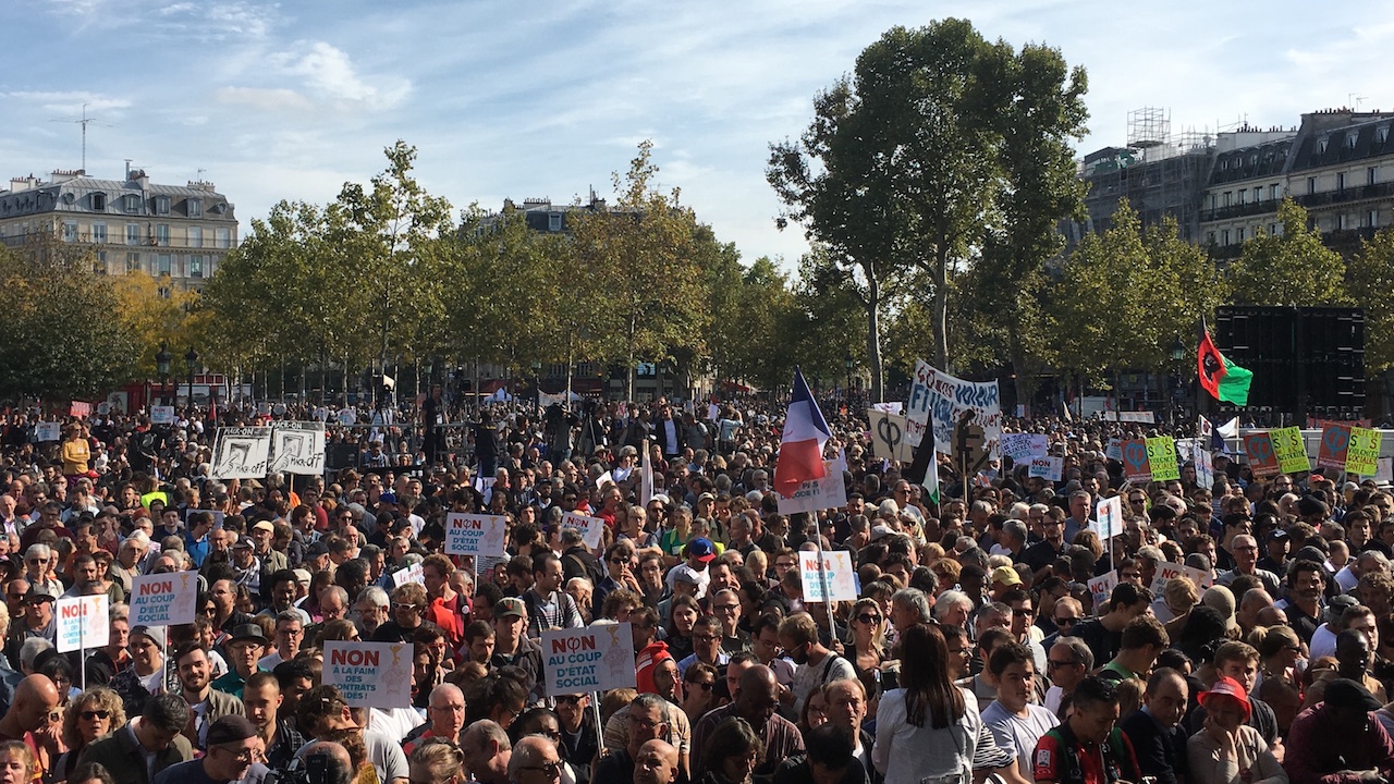 Au milieu de toutes ces infamies on se souviendra spécialement des supplétifs les plus ahuris des macronistes. Ceux qui sont venus nous agresser sur la place de la République le 23 septembre pour essayer de briser notre marche contre les ordonnances. Ce risible petit groupe de fils-à-papa qui s’amusent en politique, et que repoussèrent aux cris de « non aux fascistes » les braves gens arrivés les premiers sur la place, restera dans les annales de la stupidité en politique. On notera aussi le silence des faux amis de toujours. Ceux qui se tiennent à distance mais n’hésitent jamais pour un petit coup de poignard dans le dos en pleine bataille. Sans oublier tous ceux qui « préparent le congrès » dans les divers partis et désertent les devoirs de l’action « ici et maintenant ». Ceux-là attendent en silence que cela leur profite sans comprendre rien au fond de ce qui se joue dans ce bras de fer. Car c’est pourtant juste le droit d’être une opposition politique qui est en cause. Si nous n’existions pas, il n’y en aurait pas. Rien ne serait visible ni audible. Si nous sommes vaincus, c’est-à-dire si nous sommes réduits au silence par lassitude ou souffrance, qui serait renforcé ? Qui ? Macron doit se marrer de voir cette galerie des fantômes du passé en train de se dévorer le nombril, de la droite conventionnelle au PS.