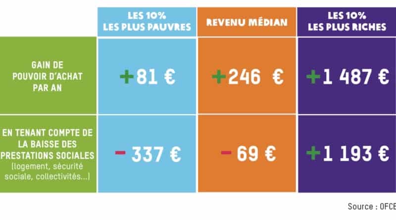 Tout le monde a compris ? La réforme de l’impôt sur la fortune se passe comme ça : les actions et les signes extérieurs de richesse sont exonérés. Cela occasionne une perte pour le budget de l’État de 3,5 milliards d’euros. Le nouvel impôt ne rapportera que 1,5 milliard au lieu de 5 avant la réforme. Notons la petite ruse juridique : l’ISF est supprimé et un nouvel impôt est créé. Impossible alors de parler de rupture de l’égalité devant l’impôt. « C’est juste que les actions et les signes extérieurs de richesse ne soient pas taxés puisque c’est juste un impôt sur l’immobilier ». Malin non ? À ce cadeau s’ajoute donc un « prélèvement forfaitaire unique », un prélèvement « libératoire » de 30% sur l’ensemble des revenus du capital. Deuxième ruse juridique, les 30% incluent la CSG ! C’est là un super « bouclier fiscal ». En tous cas c’est un magnifique cadeau pour ceux qui possèdent du capital et vivent de sa rente. Coût estimé par le gouvernement : 1,5 milliard. Mais on parle plutôt de 2 milliards d’euros.
