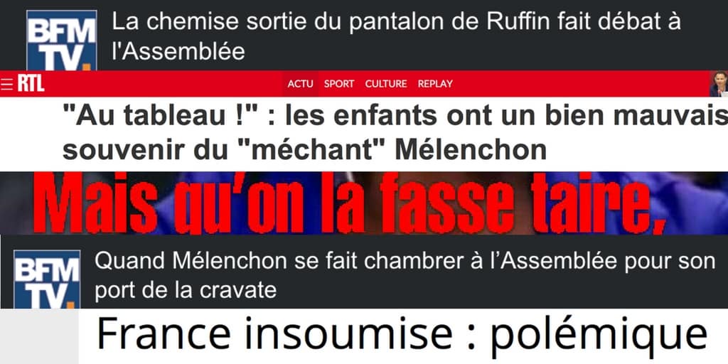 On voit là que même manipuler des enfants est une méthode acceptable pour ces « journalistes ». Comme on n’a pas la même morale, on ne dira rien du critère de choix des deux petits perroquets bien dressés exhibés sur le plateau. Un tel procédé n’a choqué aucune de vaches sacrées de la corporation pourtant si prompte à beugler en cadence dès qu’il s’agit de ses « devoirs d’informer » et autre sauf conduit de la bonne conscience des faiseurs de ragots. Ce silence est évidemment une complicité. On l’a vu quand le journal Minute a titré « Mais qu’on la fasse taire, bordel ! » s’agissant de Danièle Obono. Il n’a pas titré « qu’elle se taise ! ». Non, le titre est une injonction. Donc un appel à la violence. Silence total des indignés permanents. Taubira c’était classe. Obono… Et cela la semaine où l’on apprenait que des dingues d’extrême droite envisageaient un mauvais coup contre des mosquées, Castaner et moi. La caste approuve. « Faites-les taire » est la consigne, le but. Pour cela chaque semaine depuis notre entrée au Parlement l’un ou l’autre des médias de la bande des 9 milliardaires qui contrôlent 90% des médias du pays monte un buzz de cette nature aussitôt repris par toute la boucle des médias sur internet. Confort : pendant qu’ils choisissent de parler de ça, ils s’évitent de devoir mentionner quoique ce soit de nos combats. Leur but n’est pas d’aider à penser en informant mais d’empêcher de le faire en détournant l’attention.