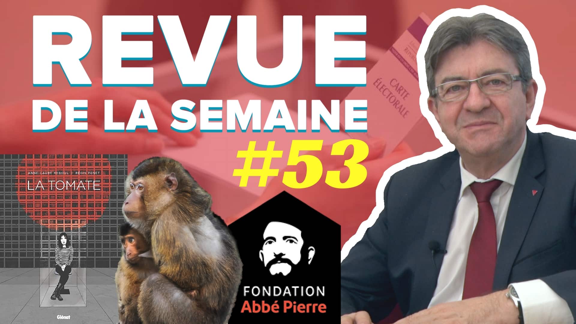 Dans ce 53e numéro de la Revue de la semaine, Jean-Luc Mélenchon revient sur le résultat des élections législatives partielles avant de parler de la question du mal logement, mise en avant par le rapport annuel de la Fondation Abbé Pierre. Il évoque également le «monkeygate», le nouveau scandale du constructeur automobile Volkswagen, qui a fait respirer des gaz d’échappement de diesel à des singes et à des humains. Jean-Luc Mélenchon parle également d’une BD, « La Tomate », qui lui a été offerte.