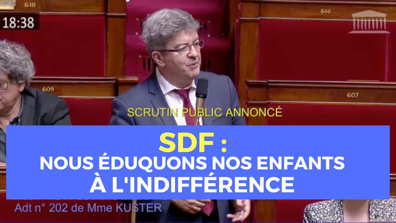 Intervention de Jean-Luc Mélenchon à l’Assemblée nationale le 5 juin 2018 dans le cadre de la loi sur le logement. Il défendait un amendement proposant l’obligation de reloger en cas d’expulsion. Il a dénoncé la société d’endurcissement et d’éducation à l’indifférence dans laquelle nous sommes aujourd’hui entraînés.