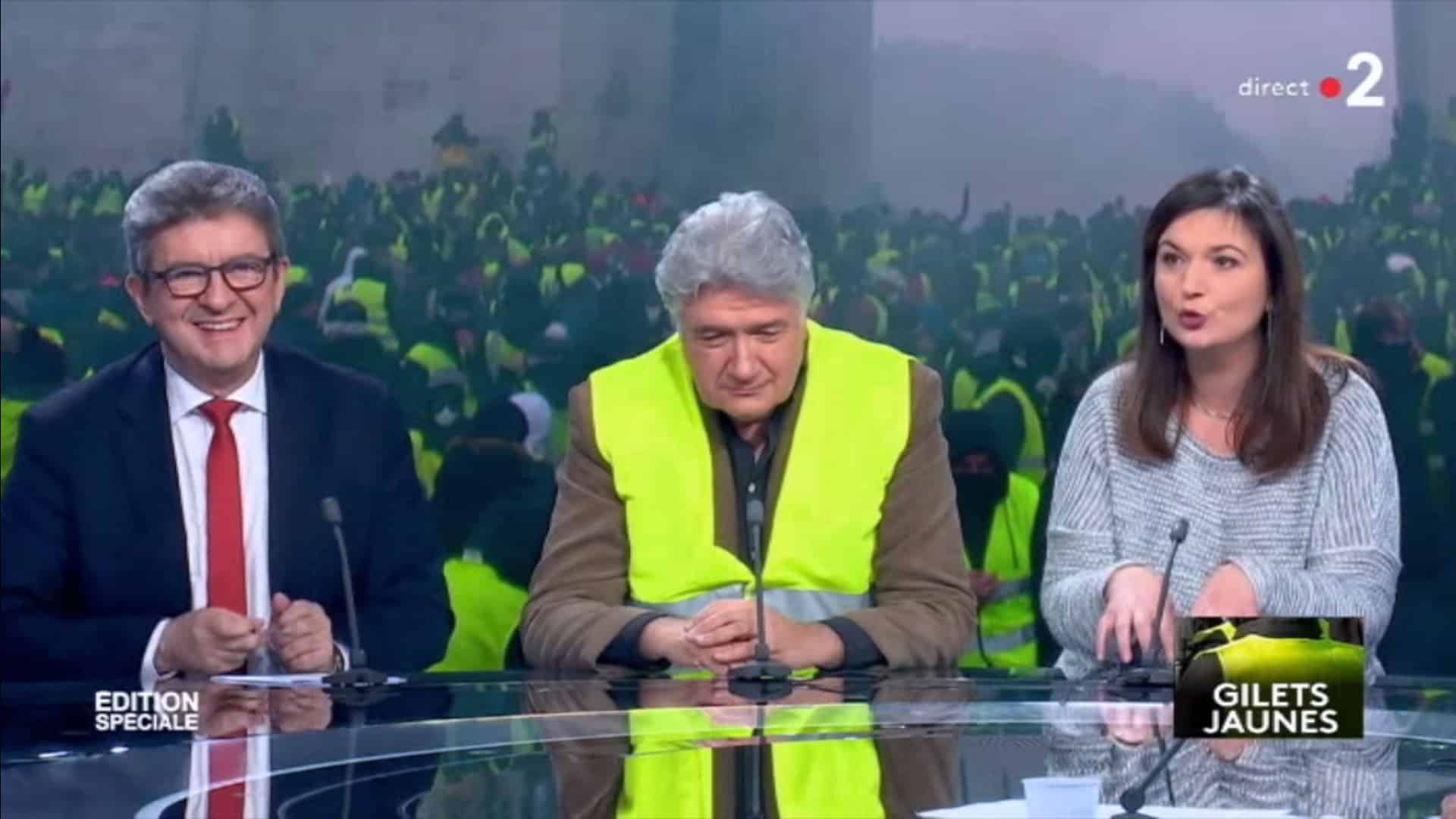 Le dimanche 2 décembre 2018, Jean-Luc Mélenchon participait à l’émission spéciale sur le mouvement des gilets jaunes. Il a expliqué qu’il n’y avait pas d’ordre public possible sans justice sociale et a condamné la tentation répressive du gouvernement. Il a prôné le rétablissement de l’ISF et la suppression de la surtaxe sur les carburants. Il a expliqué que Macron n’avait que deux choix : céder aux revendications des gilets jaunes ou dissoudre l’Assemblée nationale.