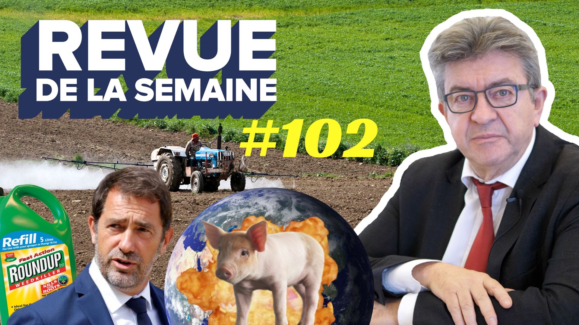 Dans ce 102e numéro de la Revue de la semaine, Jean-Luc Mélenchon laisse de côté le sujet des retraites, qu’il a traité en détail la veille dans un meeting, pour se concentrer sur quelques sujets qui ne sont pas parvenus à capter l’attention médiatique. Il parle d’abord de la « Cellule Demeter », créée par Castaner, pour lutter contre les défenseur des animaux, antispécistes et lanceurs d’alerte concernant la souffrance animale dans les élevages. Il parle ensuite des pesticides qui se retrouvent désormais dans l’air que nous respirons. Enfin, il évoque la COP 25 qui n’a abouti à rien alors que nous devons faire face à l’urgence climatique.