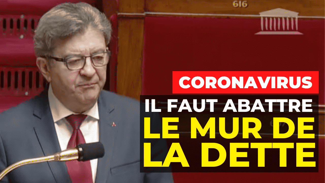 Intervention de Jean-Luc Mélenchon à l’Assemblée nationale le vendredi 17 avril 2020 sur la dette. Il a affirmé que celle-ci ne pourrait pas être remboursée et qu’il fallait « abattre le mur de la dette ».