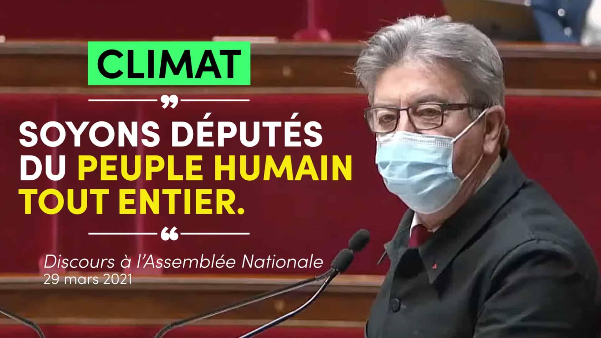 Le lundi 29 mars 2021, Jean-Luc Mélenchon intervenait à l’Assemblée nationale pour rejeter la prétendue loi climat du gouvernement. Le président du groupe «La France insoumise» a expliqué tous les manques qui rendaient ce projet de loi inadapté à l’urgence. Il a ainsi demandé comment LREM pouvait prétendre faire une loi sur le climat dans laquelle il n’était fait aucune mention des accords de libre échange, du 100% renouvelable ou encore de la question de l’interdiction des pesticides dangereux comme le glyphosate.