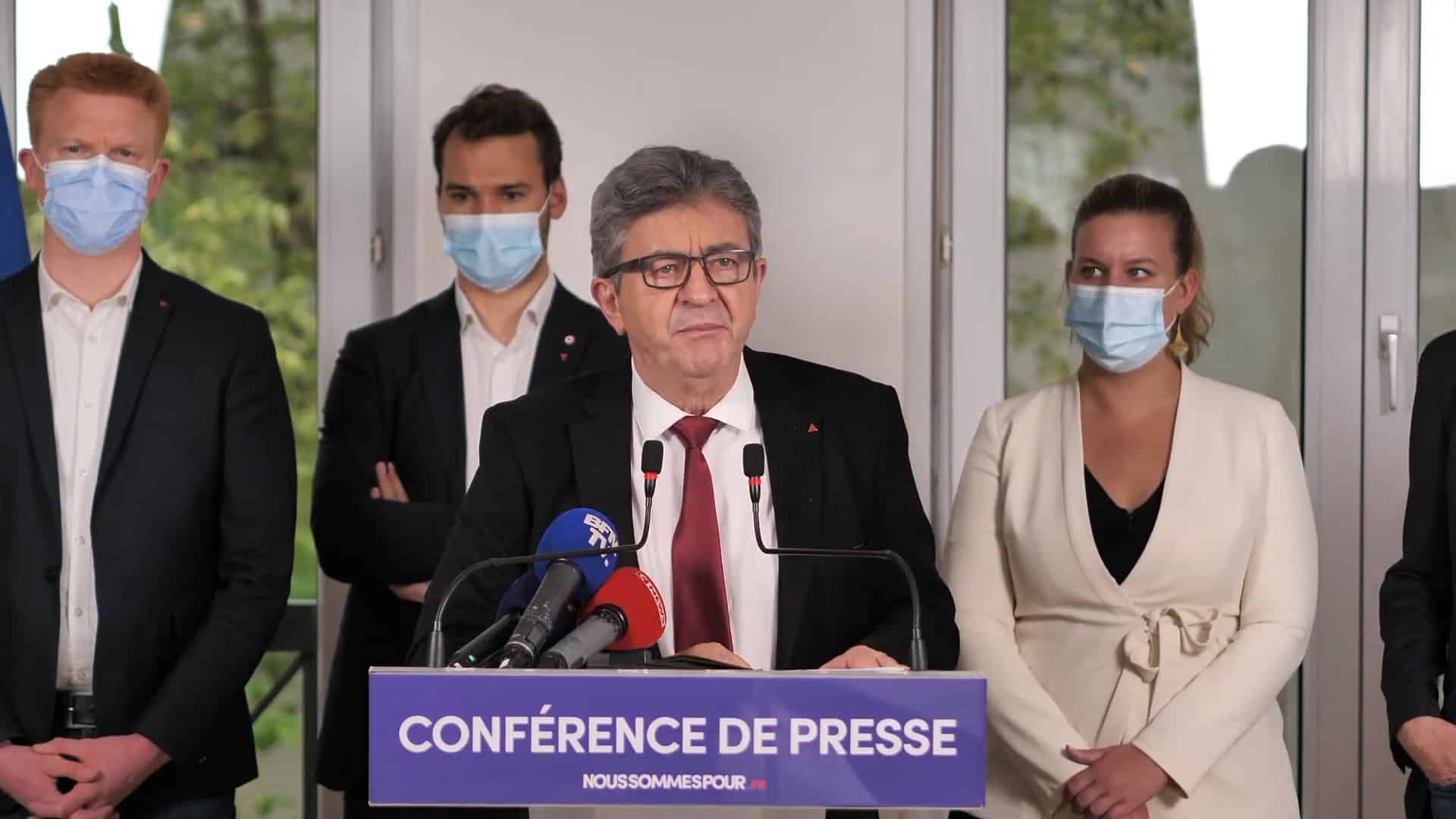 Le 19 mai 2021, suite à la manifestation de syndicats policiers devant l’Assemblée nationale, Jean-Luc Mélenchon tenait une conférence de presse aux côtés des députés insoumis Mathilde Panot, Adrien Quatennens, Ugo Bernalicis et Manuel Bompard.