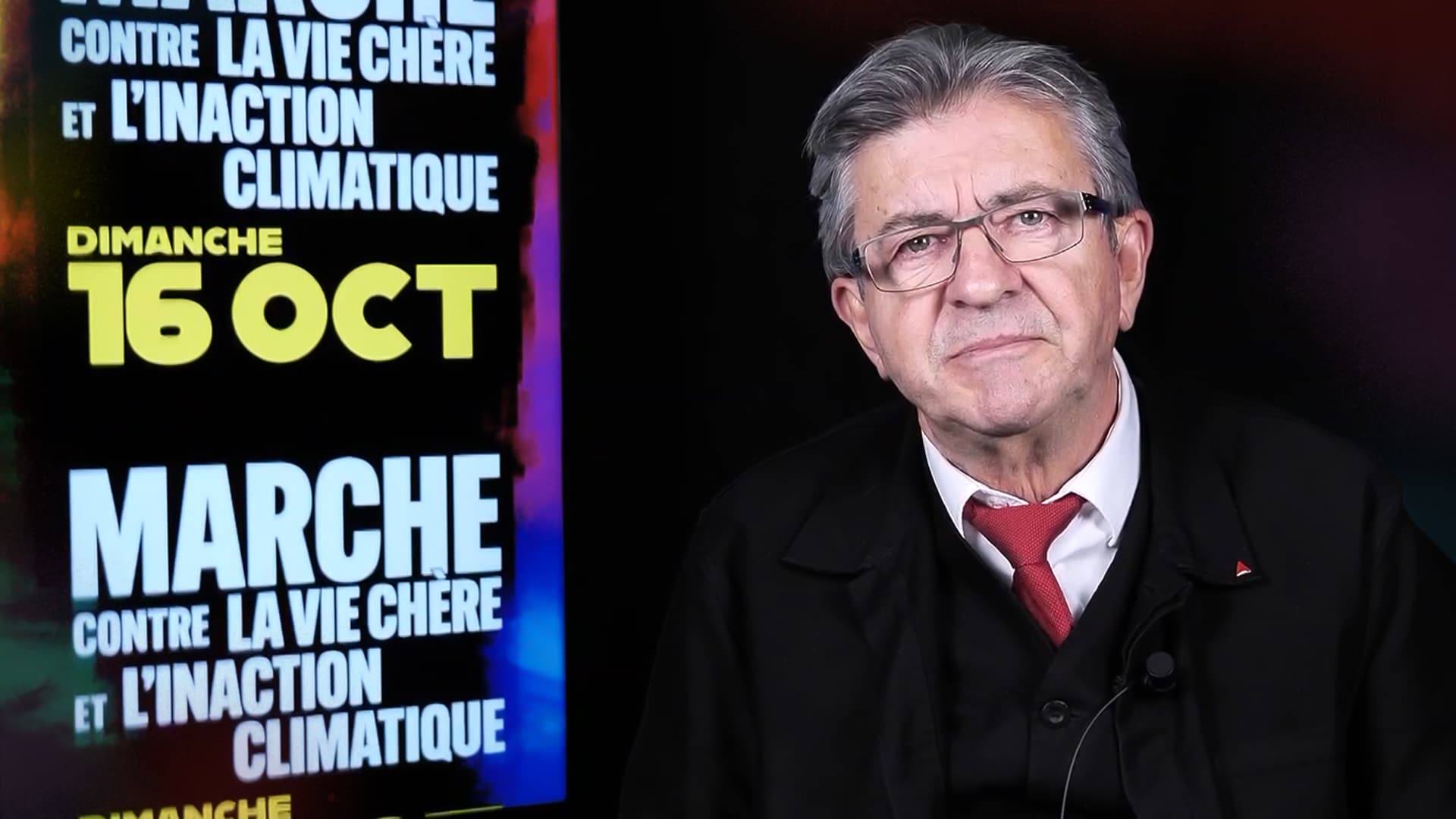 Le jeudi 13 octobre Jean-Luc Mélenchon adressait un message aux Français avant la marche du 16 octobre à Paris contre la vie chère, l’inaction climatique et pour la hausse des salaires (https://marche16octobre.fr/).