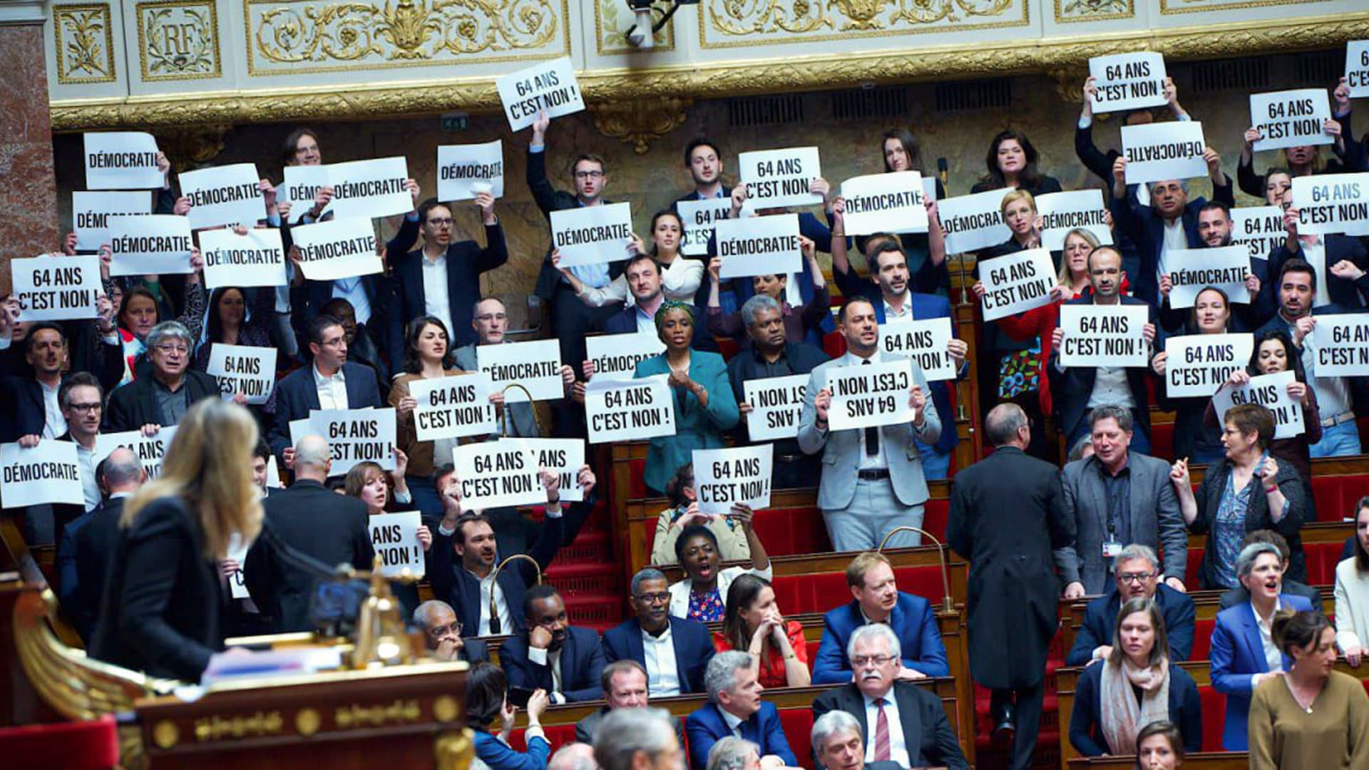 Dans le contexte précis cette Marseillaise voulait être une protestation contre la banalisation du 49.3. Le 49.3 c’est le retour du droit de veto royal « suspensif ! » annulé par la grande Révolution de 1789. Madame Borne l’a utilisé près de dix fois dans l’examen du projet de loi de finance. Chaque fois les insoumis ont déposé une motion de censure. Pour eux, il était clair que les macronistes avaient pour projet de banaliser cet outil, de créer une culture de soumission à cette violence. La résistance s’organisa pied à pied, 49.3 par 49.3, motion par motion. Les partenaires de la NUPES ne voyaient pas les choses comme nous, c’est vrai. Mais à la fin nous avons voté ensemble chaque censure. Jamais l’unité dans le combat ne s’est brisée. Je le mentionne avec gourmandise par comparaison avec les votes meurtriers que se sont infligés mutuellement Edouard Philippistes et macronistes non seulement entre eux mais aussi quand ils comptaient nous diviser, nous de la NUPES, sur leurs textes. Et encore, pendant cette Marseillaise, les macronistes se levèrent laborieusement pour applaudir Borne sur l’ordre gesticulé de leur présidente Aurore Bergé. Pendant ce temps, les rangées MODEM consternées restaient assises blêmes et perdues. Combien des uns et des autres sont venus se confier ensuite : « on ne peut pas continuer comme ça, il faut qu’elle s’en aille » parlant d’Elisabeth Borne. Car bien sûr, la démonstration d’autorité par 49.3 est une démonstration de faiblesse. Tout le monde le comprend comme ça. À Paris dans le microcosme, en France et dans le monde. La fin de règne macroniste coïncide avec son nouveau début. Il y a moins d’un an Macron « gagnait » la présidentielle par défaut et perdait les deux tours de la législative. A présent les ministres se cachent et annulent leurs déplacements et après quatre réunions hier à l’Elysée désignant l’auteur de la stratégie qui a mené son équipe dans le mur, le monarque présidentiel perplexe courait la nuit même se cacher au pavillon de la lanterne abandonnant Paris et sa place de la Concorde pleine de peuple en colère et trop près du Palais…