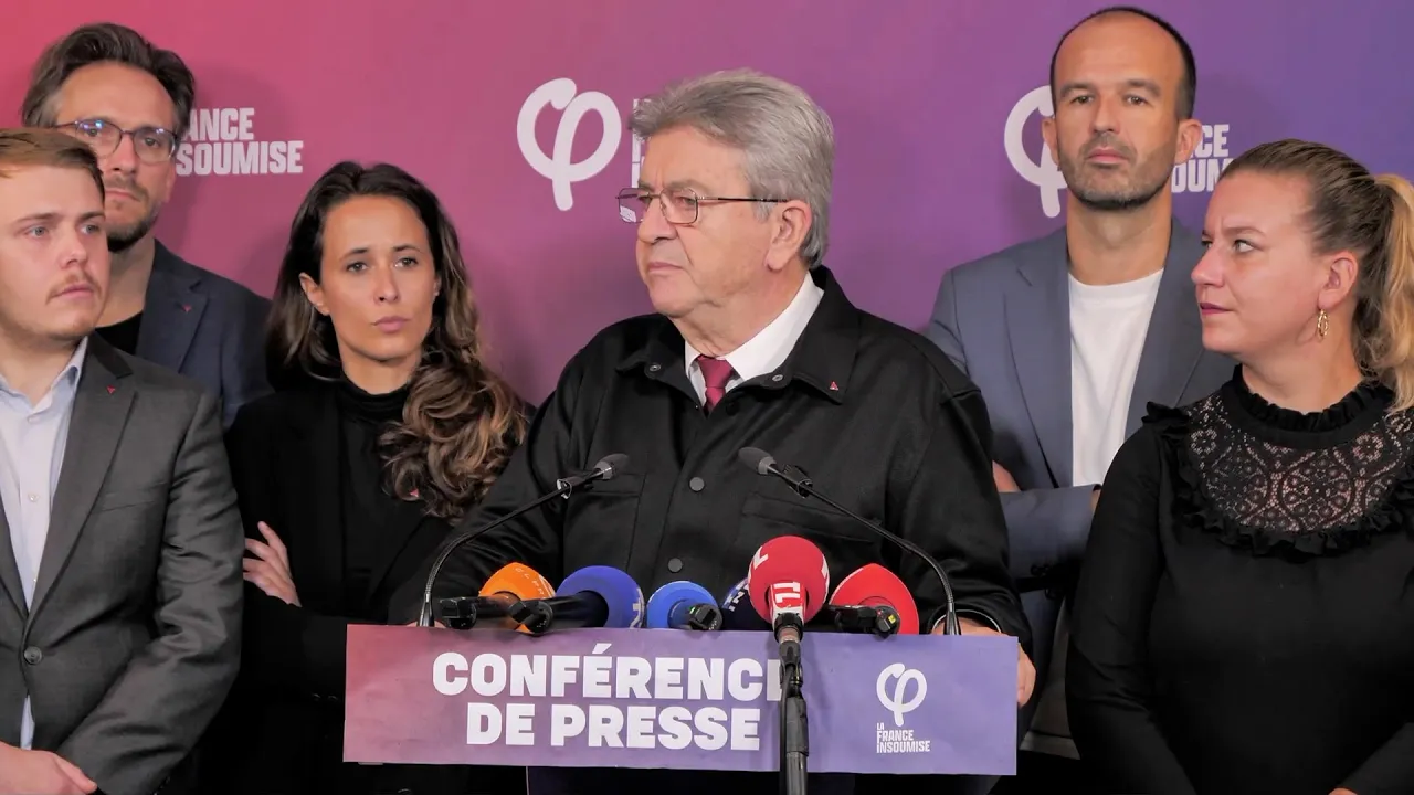 Conférence de presse de La France insoumise, le 6 octobre 2025, en présence des membres de la coordination du mouvement, suite à la démission de S. Lecornu.