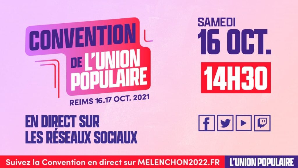 Le samedi 16 octobre 2021, suivez dès 14h30 la Convention Populaire en direct depuis Reims . Participez tout au long de la journée sur les réseaux sociaux avec #ConventionPopulaire Retrouvez également cet événement dans une version accessible aux personnes sourdes et malentendantes.