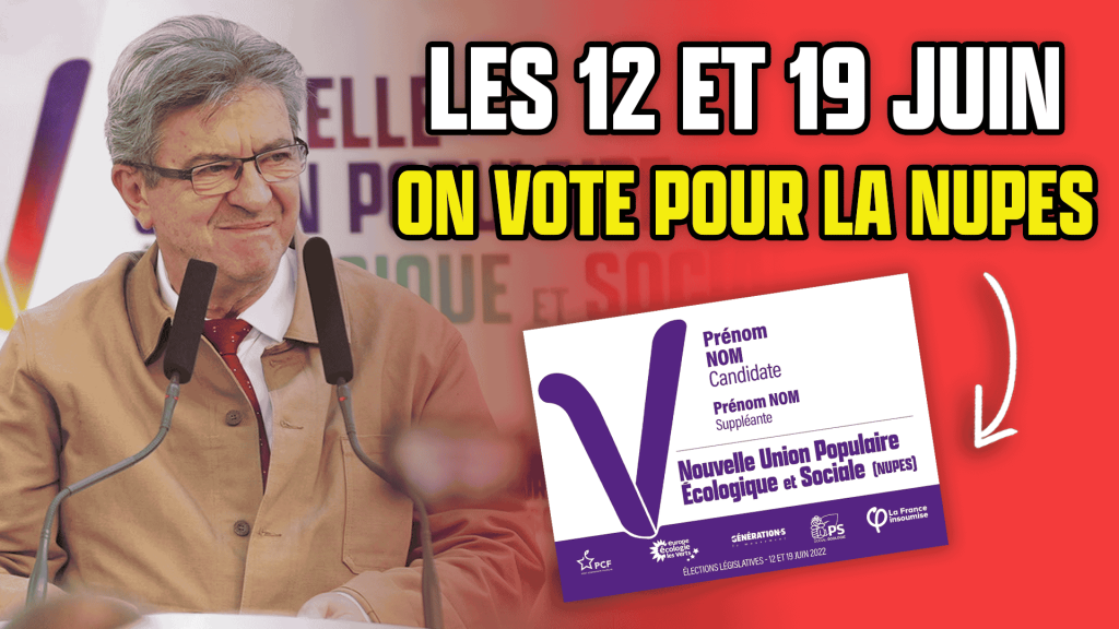 Jean-Luc Mélenchon s’adresse à vous avant le premier tour des élections législatives. Dimanche 12 juin, si vous choisissez le bulletin de vote qui permet d’élire un député de la NUPES, le bulletin de vote avec un V, vous pouvez envoyer une majorité de députés à l’Assemblée nationale et à partir de là il y aura […]